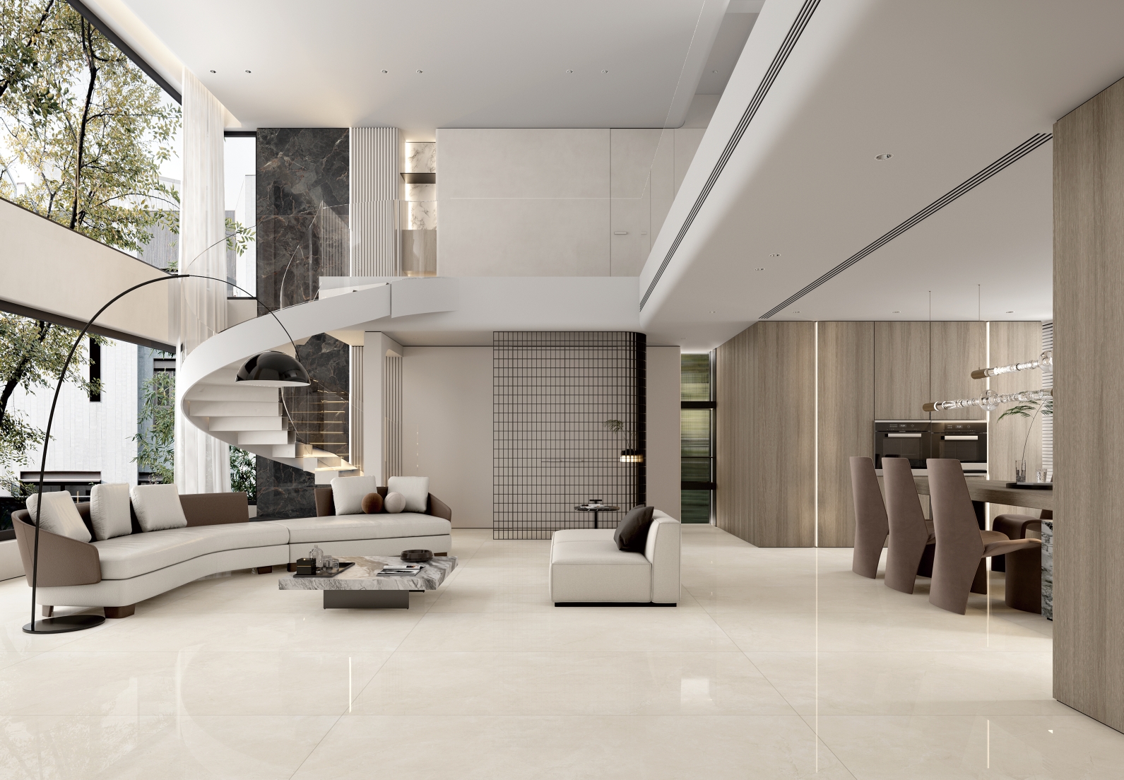 適用風格:該產品為子母配套磚,包含規格1200*1200mm/900*1800mm/750*1500mm/650*1350mm/600*1200mm/800*800mm/400*800mm;適用于現代簡約、奶油風、輕奢風格等